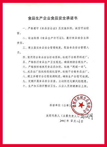 和潤(rùn)食品鄭重承諾